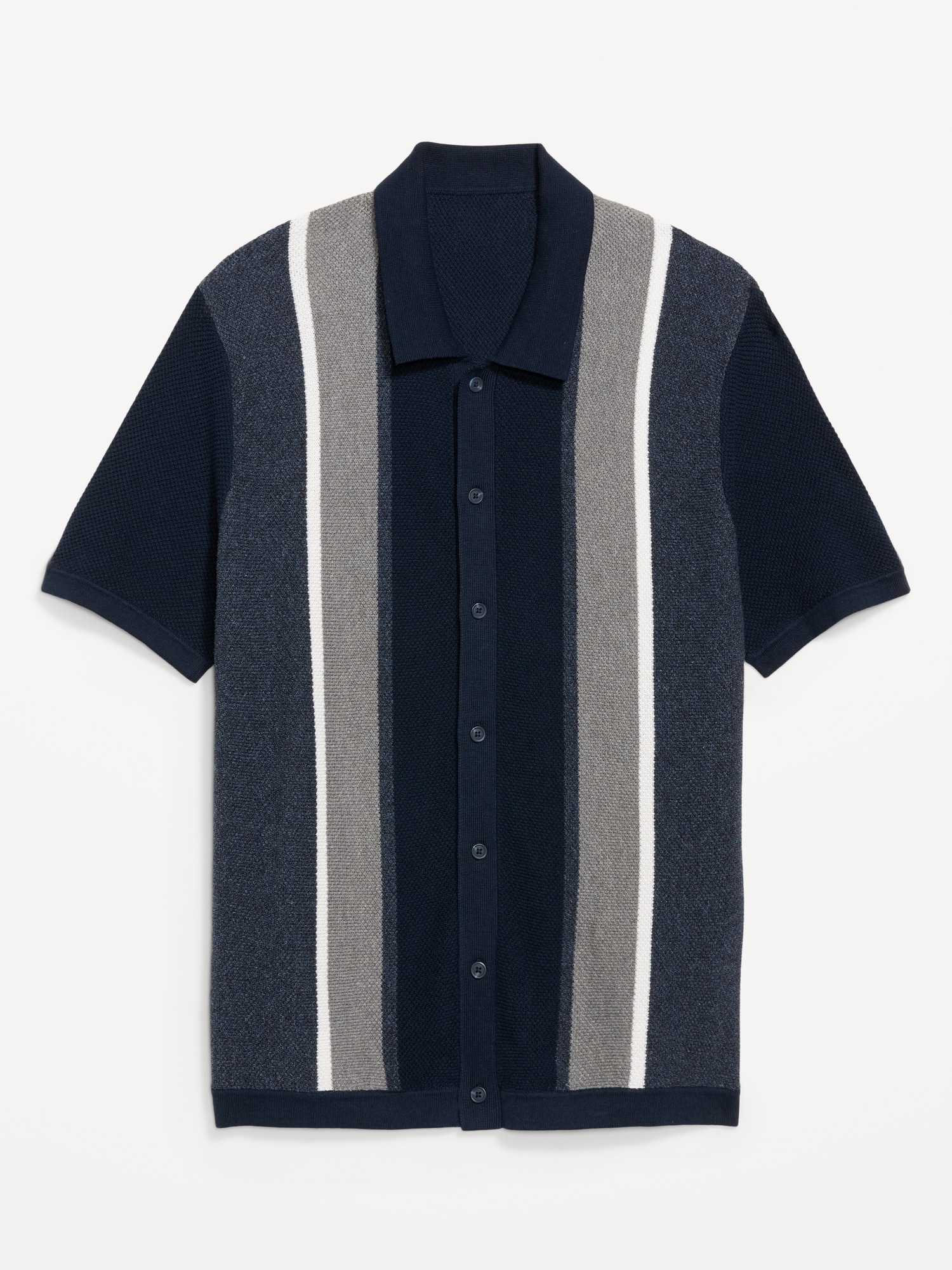 Button-Down Striped Polo: spread collar, short sleeves, buttoned placket, pullover style, #802042