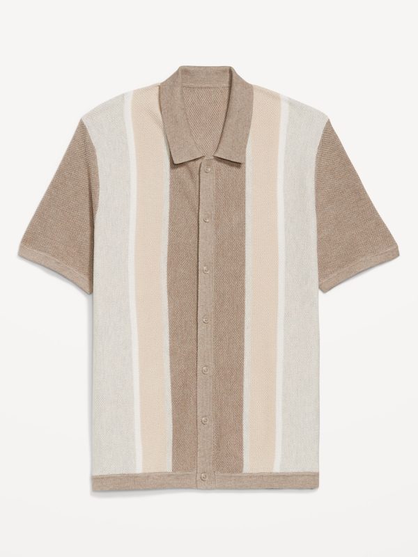Button-Down Striped Polo: spread collar, short sleeves, buttoned placket, pullover style, #802042