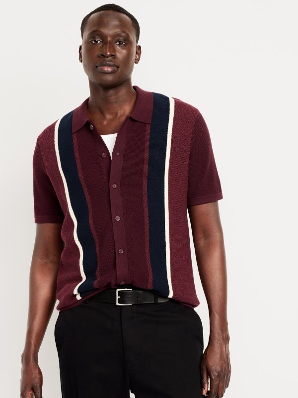 Button-Down Striped Polo: spread collar, short sleeves, buttoned placket, pullover style, #802042