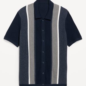 Button-Down Striped Polo: spread collar, short sleeves, buttoned placket, pullover style, #802042