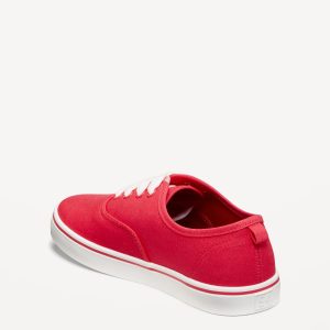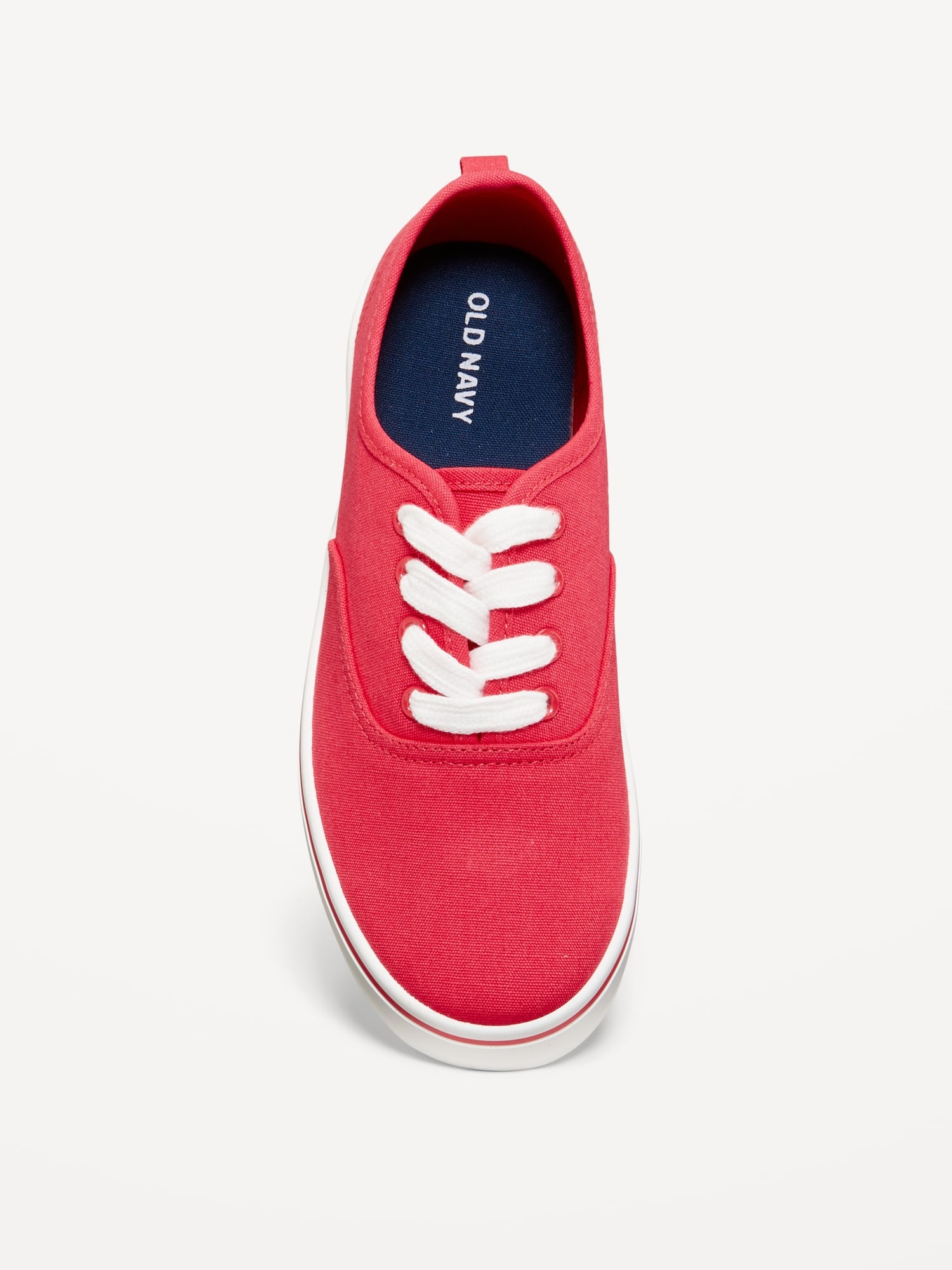 Canvas Lace-Up Sneakers for Girls: cushioned foot bed, contrasting rubber midsole, vulcanized outsole, lace-up front, pull tab at heel, #762472