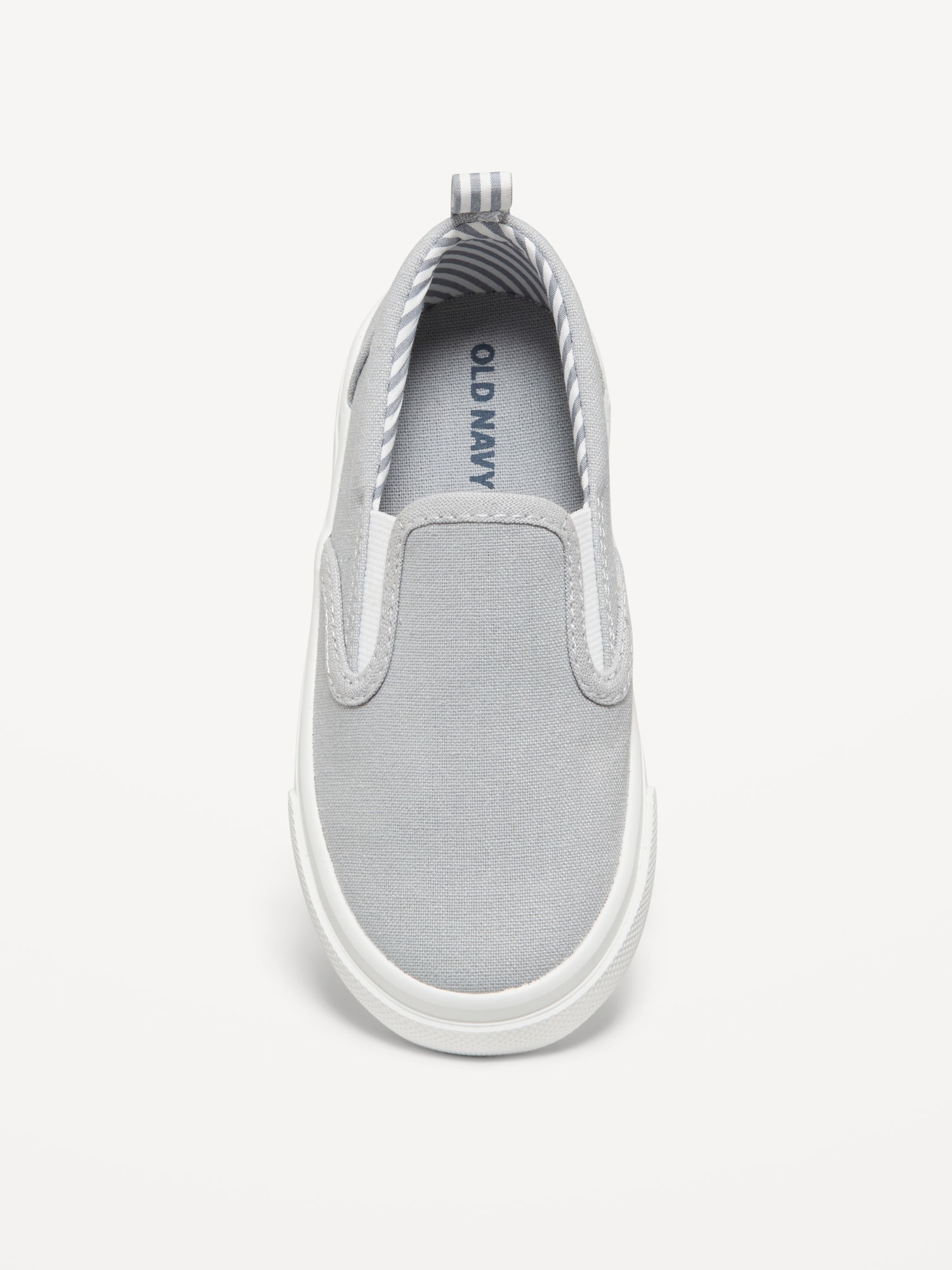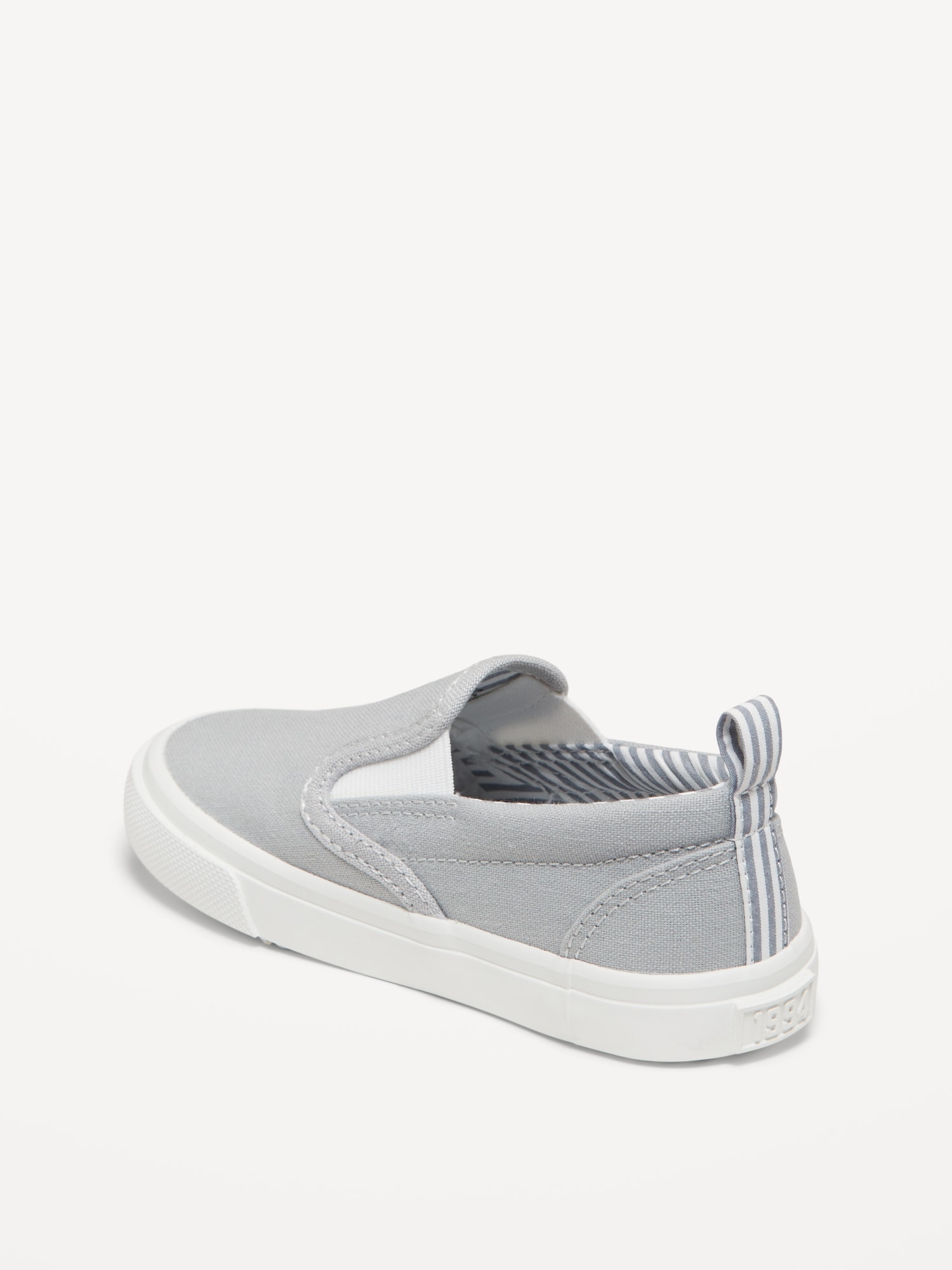 Canvas Slip-On Sneakers for Toddler Boys: webbed-elastic side goring, cushioned insoles, contrasting rubber midsole, flocked outsole, pull tab at heel, #859220