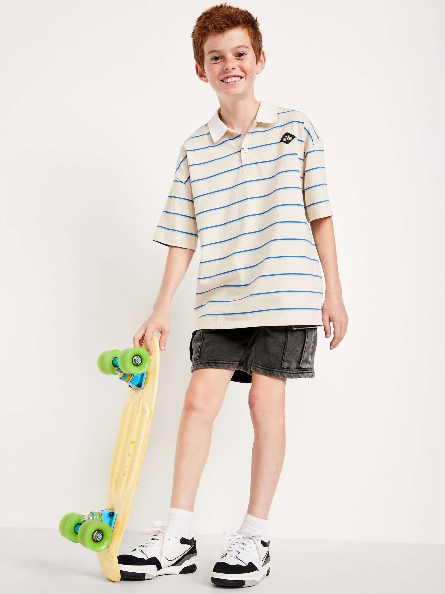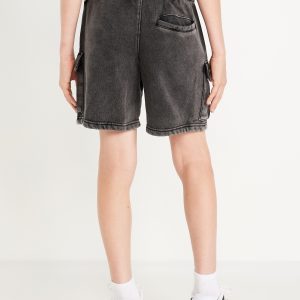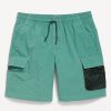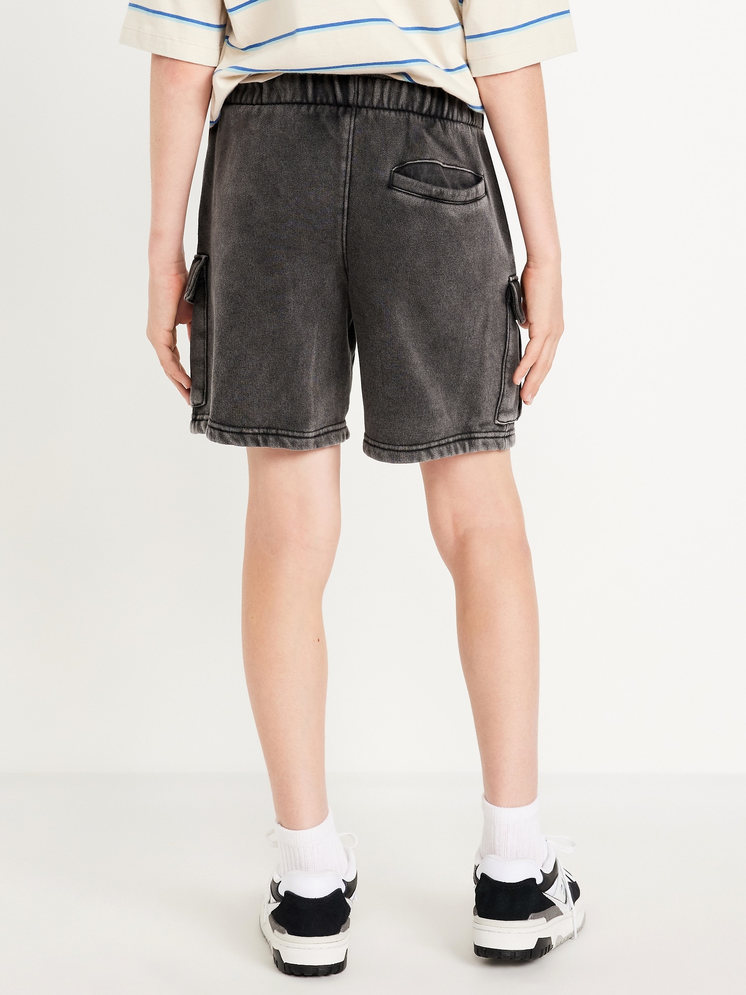 Cargo Fleece Shorts for Boys: elasticized waistband, functional drawstring, on-seam side pockets, flap adhesive secure-close cargo pockets, single welt pocket at back, #693213