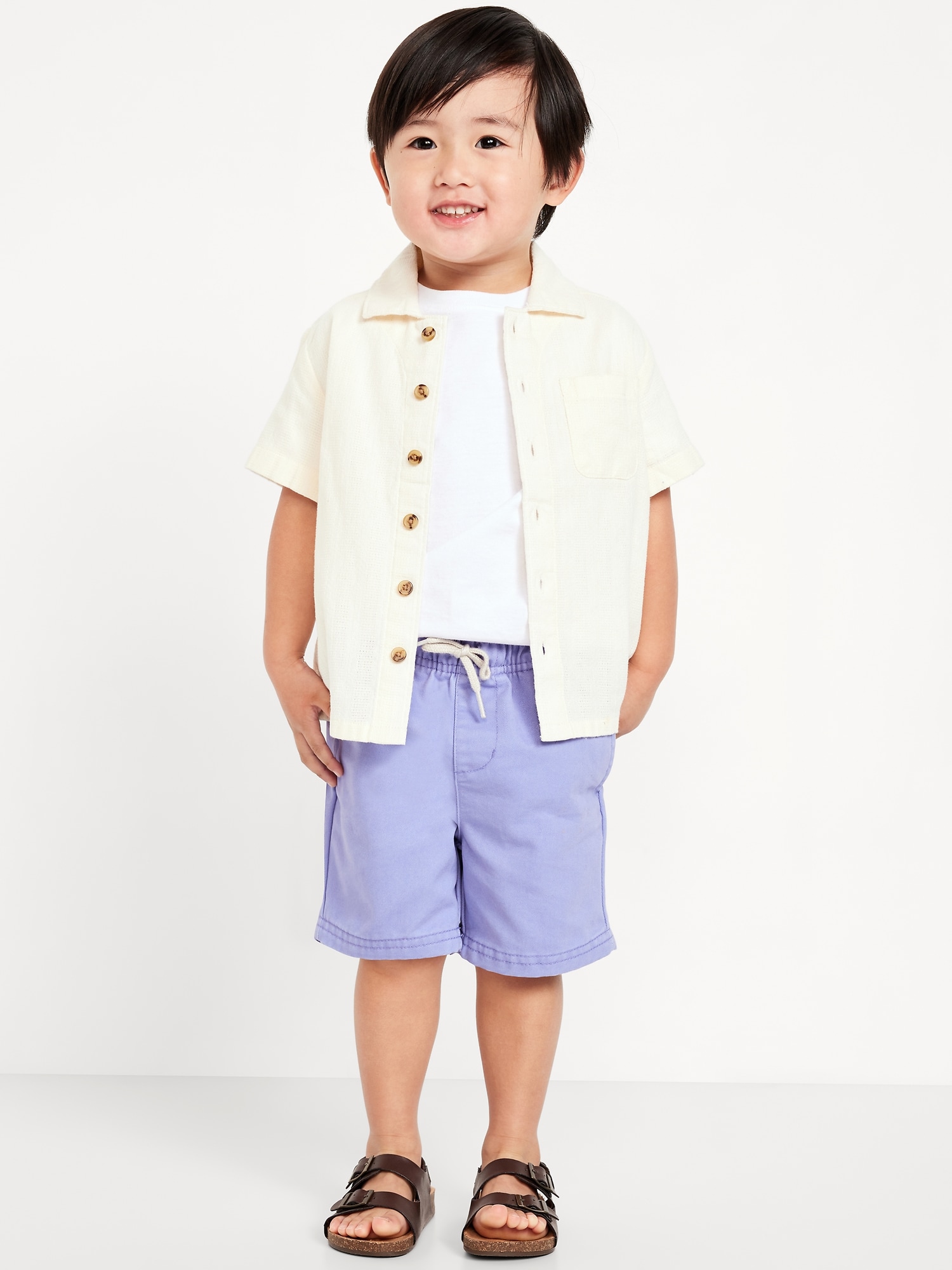 Chambray Shorts for Toddler Boys: elasticized waist, functional drawstring, faux fly, diagonal front pockets, easy pull-on style, #864755