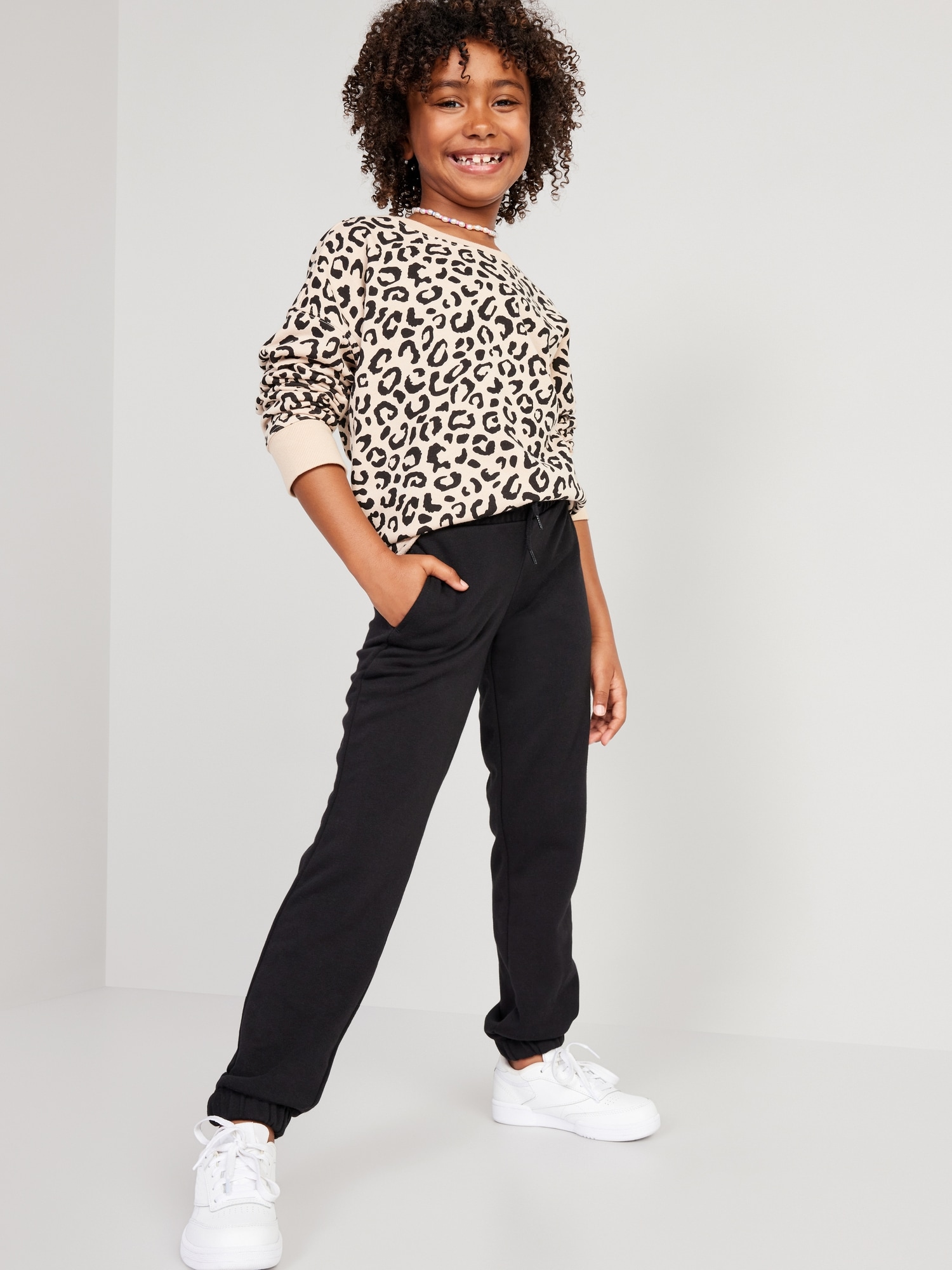 Cinched-Hem Jogger Sweatpants for Girls: Elasticized waist, with adjustable drawstring., On-seam hip pockets., Cinched, elasticized hem., Soft, cozy french terry., Easy pull-on style., #710352