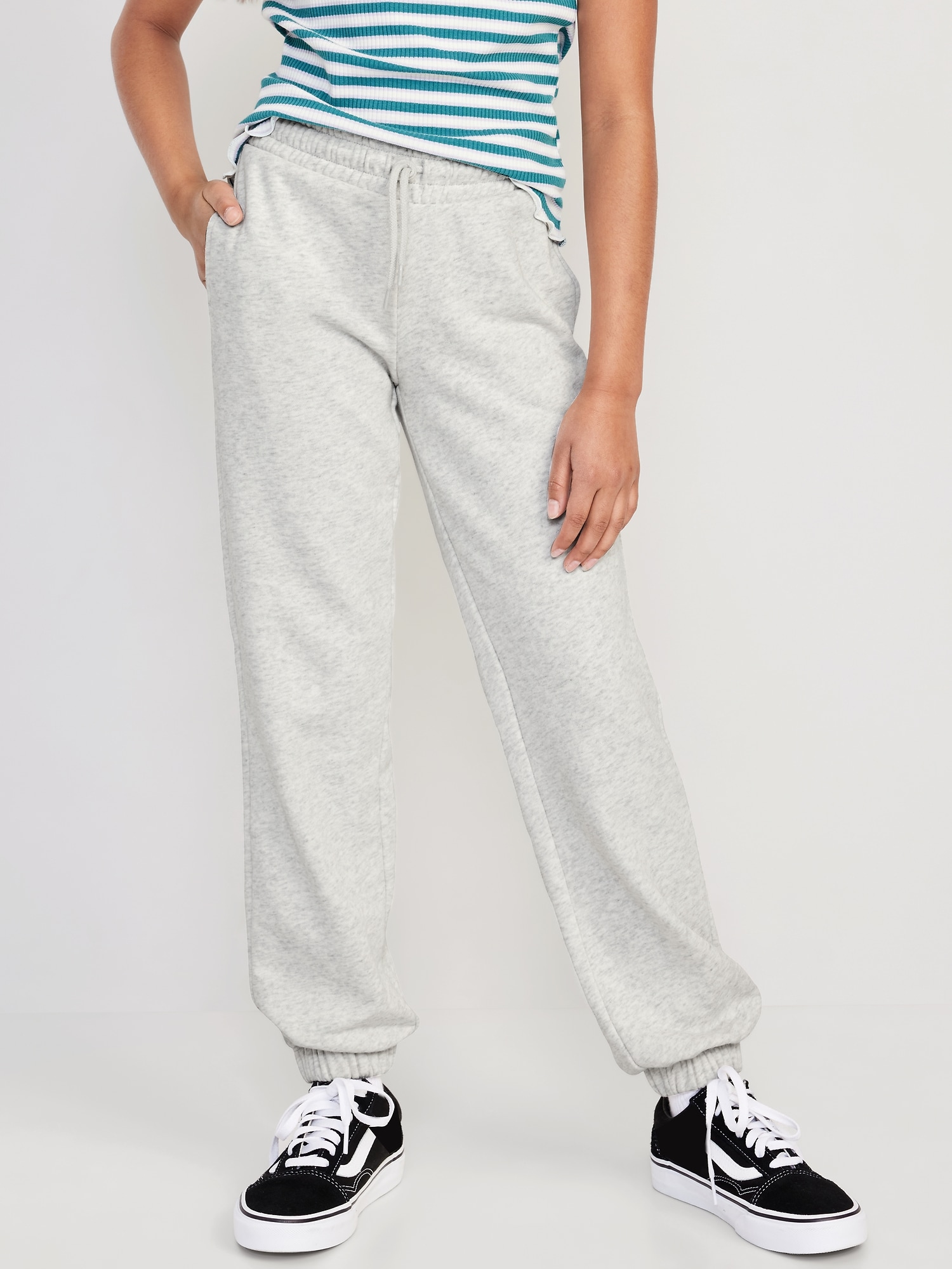 Cinched-Hem Jogger Sweatpants for Girls: Elasticized waist, with adjustable drawstring., On-seam hip pockets., Cinched, elasticized hem., Soft, cozy french terry., Easy pull-on style., #710352