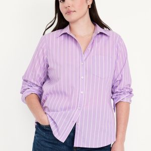 Classic Button-Down Shirt: spread collar, long sleeves, buttoned cuffs, button front, patch chest pocket, curved hem, fading, #576683
