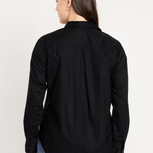 Classic Button-Down Shirt: spread collar, long sleeves, buttoned cuffs, button front, patch chest pocket, curved hem, fading, #576683