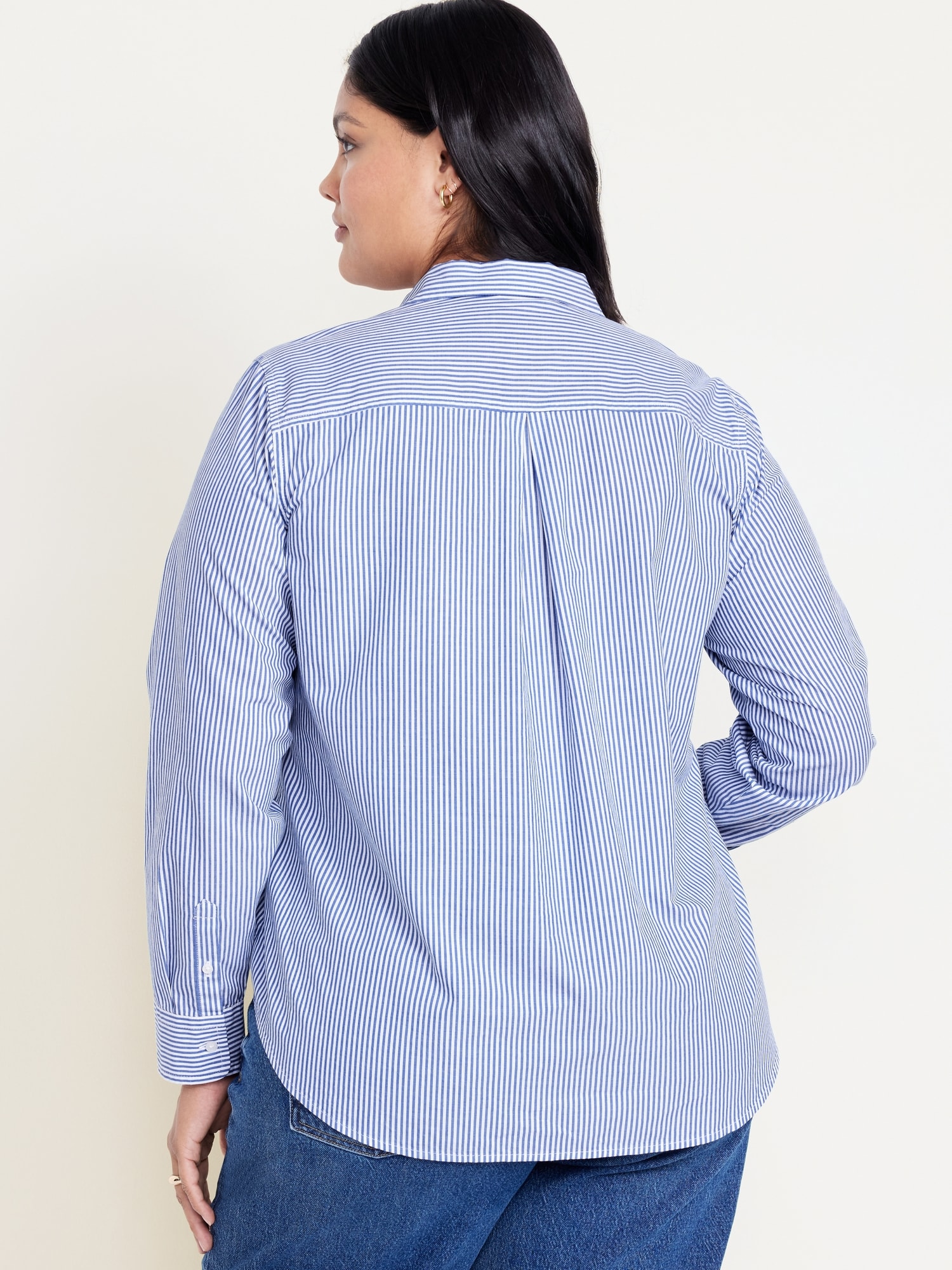 Classic Button-Down Shirt: spread collar, long sleeves, buttoned cuffs, button front, patch chest pocket, curved hem, fading, #576683