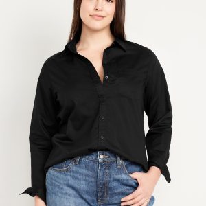 Classic Button-Down Shirt: spread collar, long sleeves, buttoned cuffs, button front, patch chest pocket, curved hem, fading, #576683