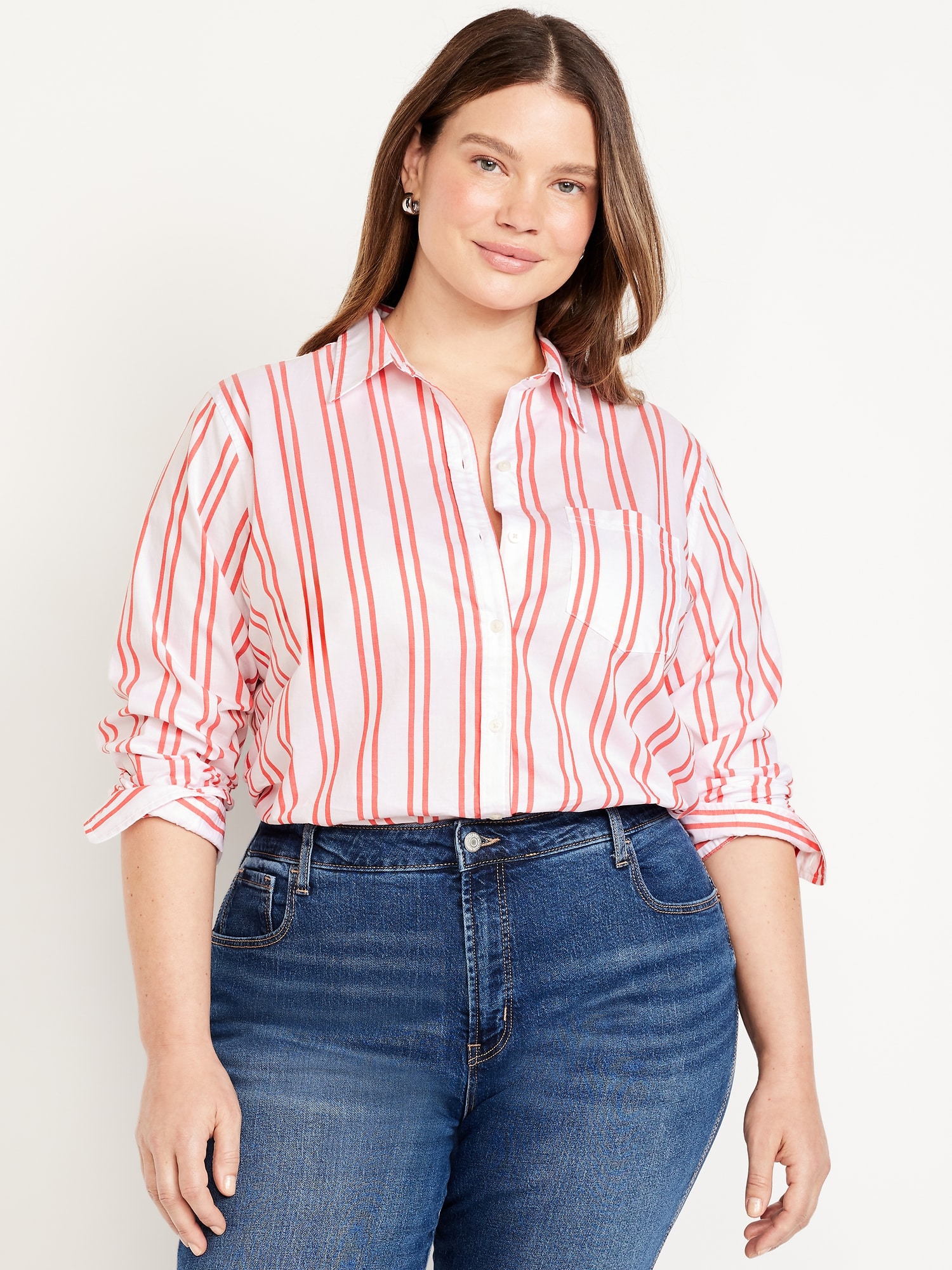 Classic Button-Down Shirt: spread collar, long sleeves, buttoned cuffs, button front, patch chest pocket, curved hem, fading, #576683