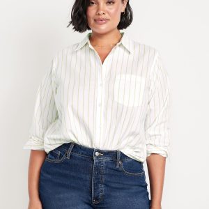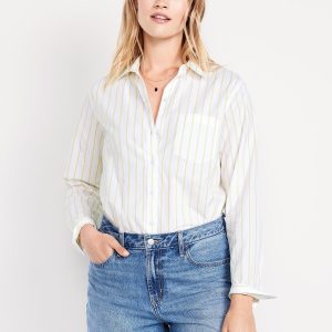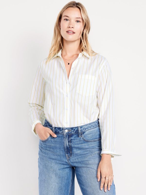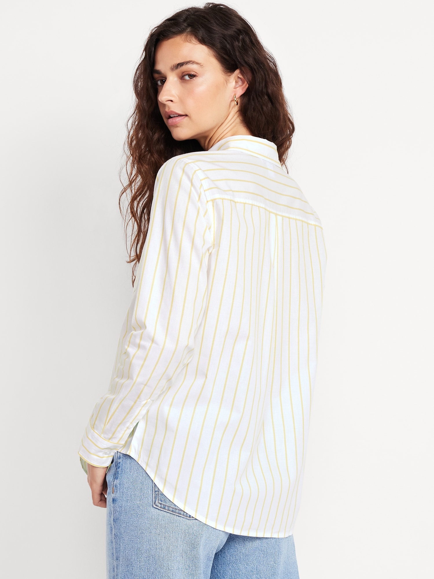Classic Button-Down Shirt: spread collar, long sleeves, buttoned cuffs, button front, patch chest pocket, curved hem, fading, #576683