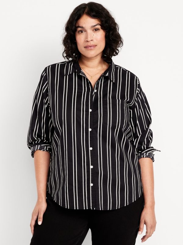 Classic Button-Down Shirt: spread collar, long sleeves, buttoned cuffs, button front, patch chest pocket, curved hem, fading, #576683