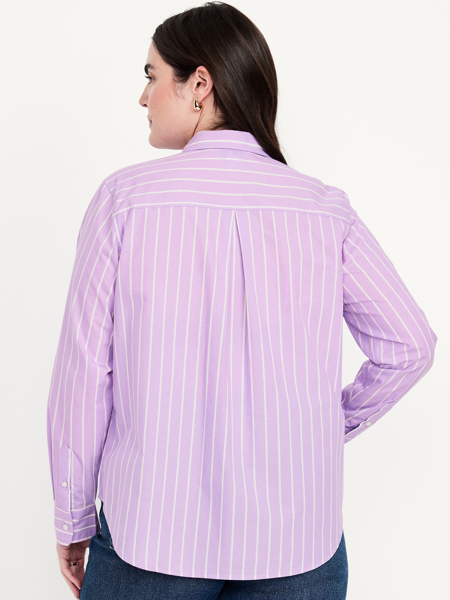 Classic Button-Down Shirt: spread collar, long sleeves, buttoned cuffs, button front, patch chest pocket, curved hem, fading, #576683