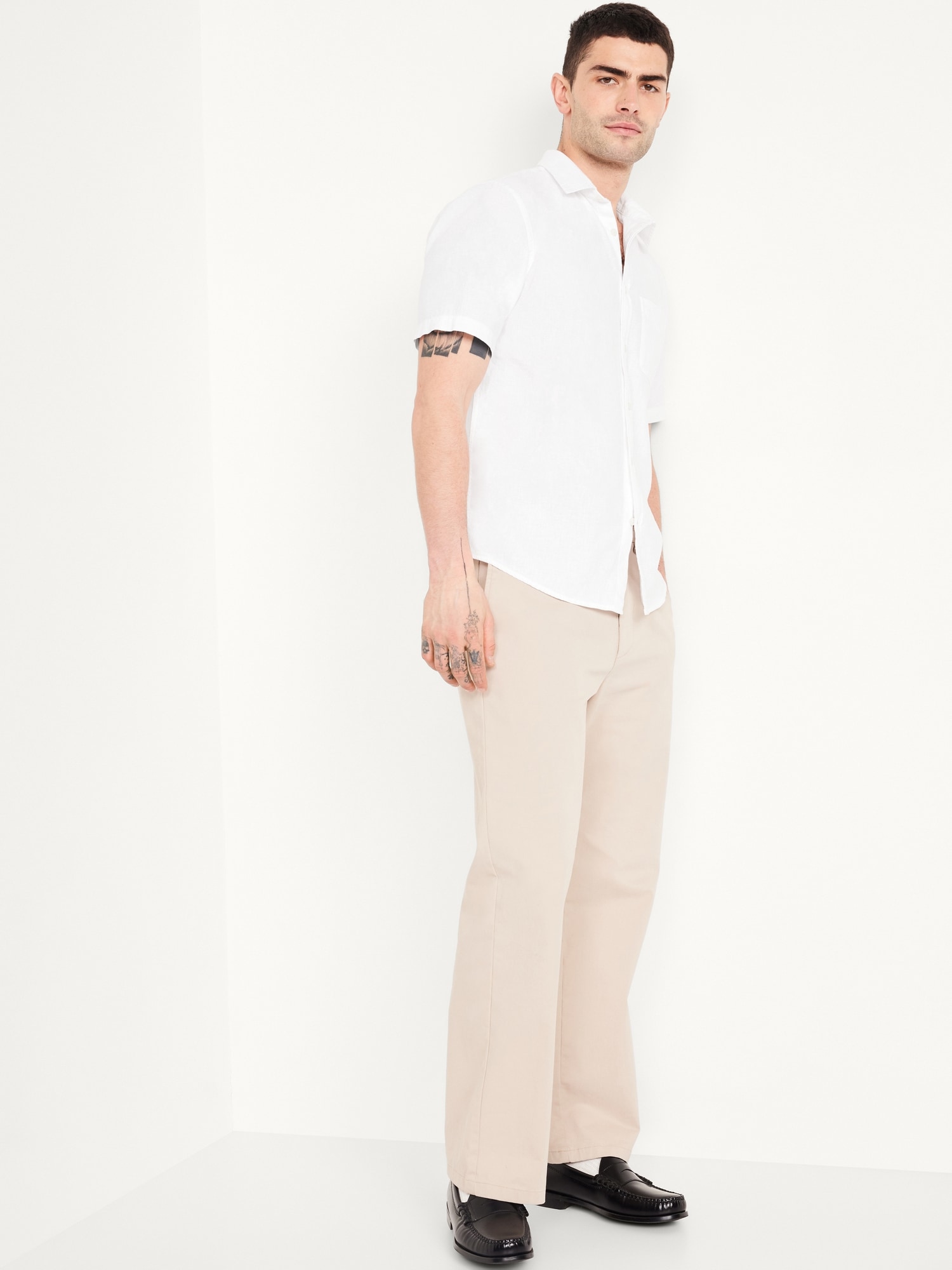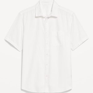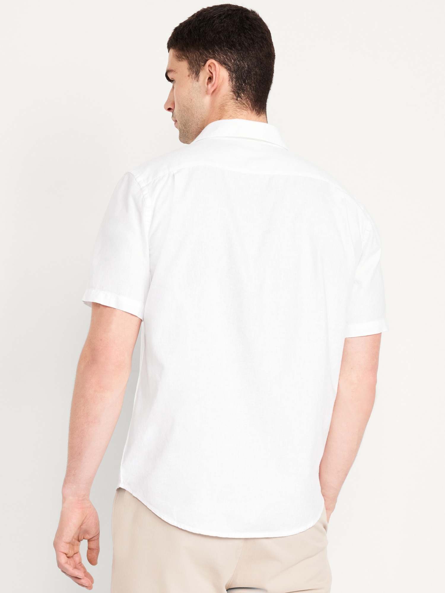 Classic Fit Everyday Linen-Blend Shirt: spread collar, short sleeves, full-button front, patch chest pocket, prints vary, #807396