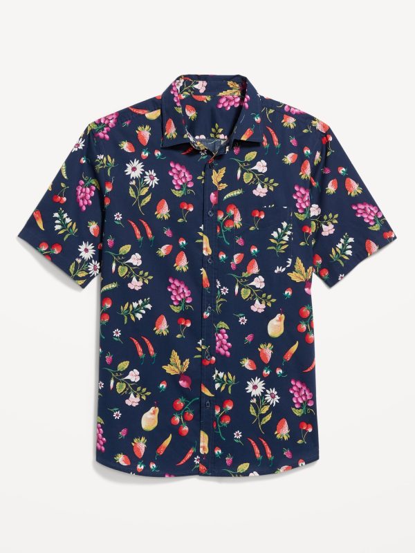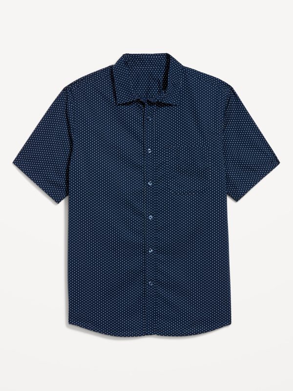 Classic Fit Everyday Pocket Shirt: spread collar, short sleeves, full-button front, patch chest pocket, prints vary, #807396
