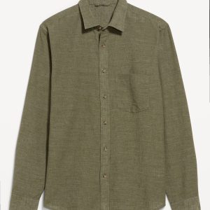Classic Fit Linen-Blend Shirt: spread collar, long sleeves, buttoned cuffs, full-button front, patch chest pocket, #691163