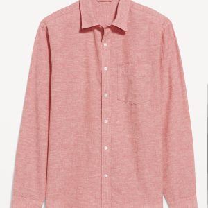 Classic Fit Linen-Blend Shirt: spread collar, long sleeves, buttoned cuffs, full-button front, patch chest pocket, #691163