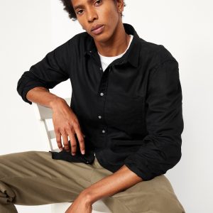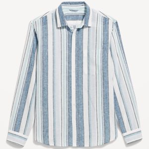 Classic Fit Linen-Blend Shirt: spread collar, long sleeves, buttoned cuffs, full-button front, patch chest pocket, #691163
