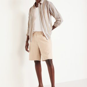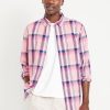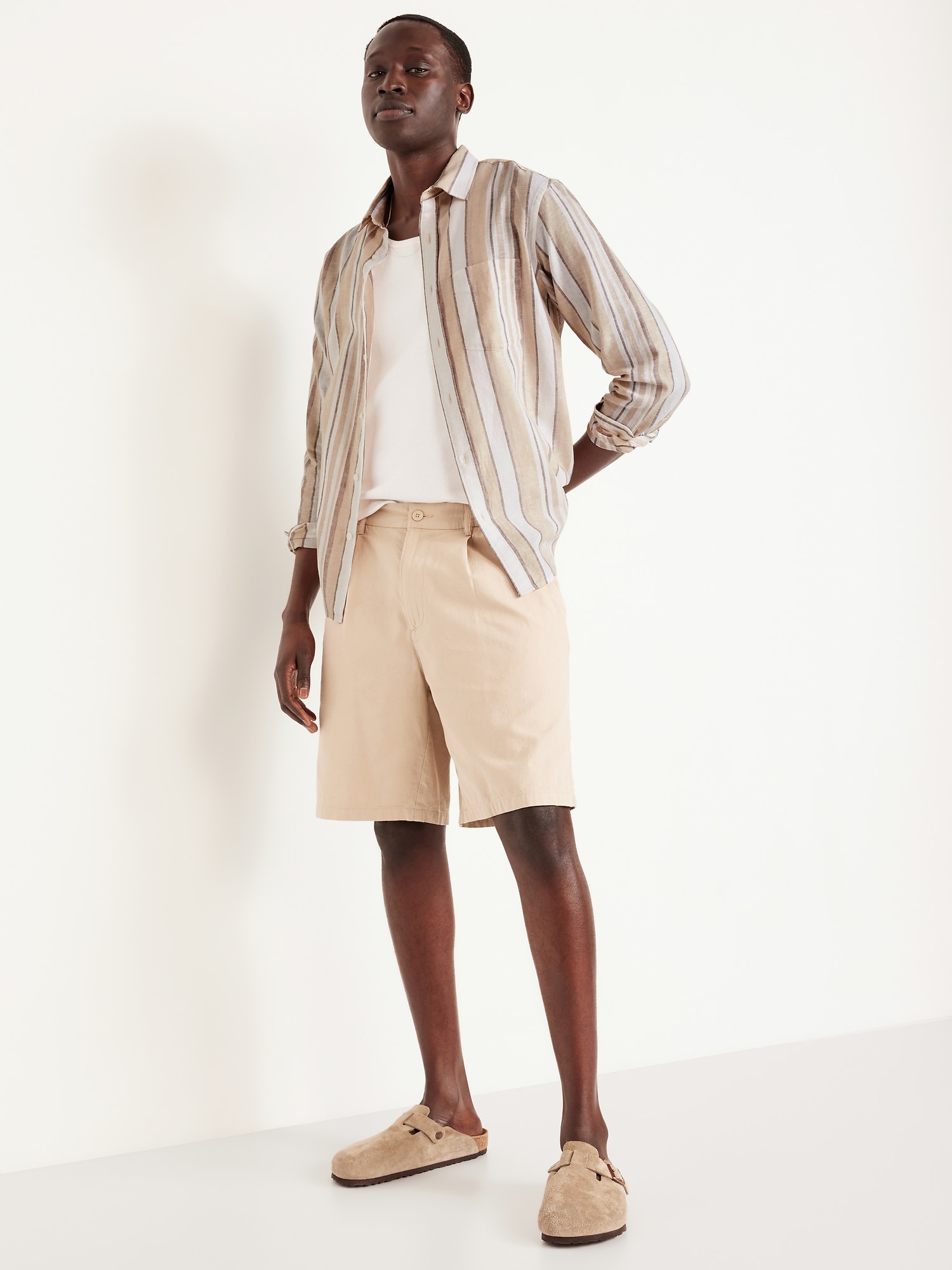 Classic Fit Linen-Blend Shirt: spread collar, long sleeves, buttoned cuffs, full-button front, patch chest pocket, #691163