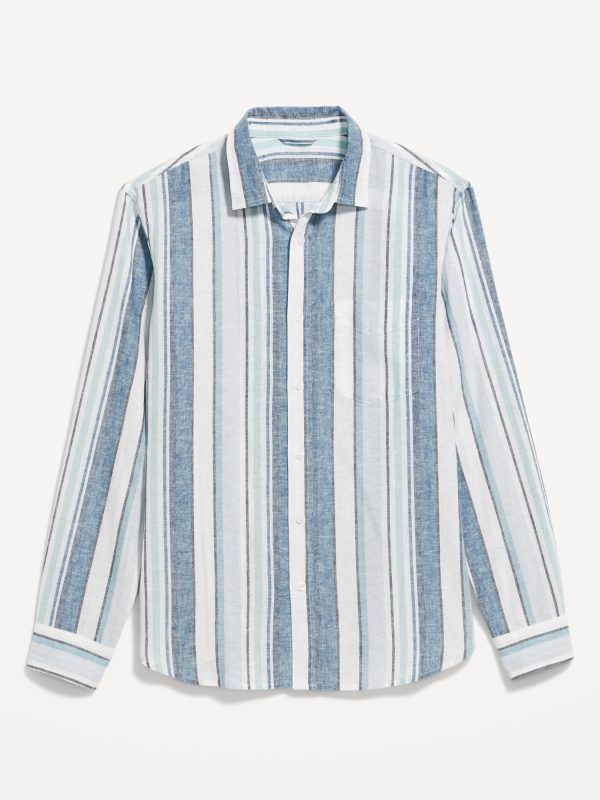 Classic Fit Linen-Blend Shirt: spread collar, long sleeves, buttoned cuffs, full-button front, patch chest pocket, #691163