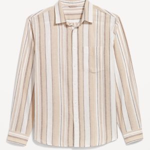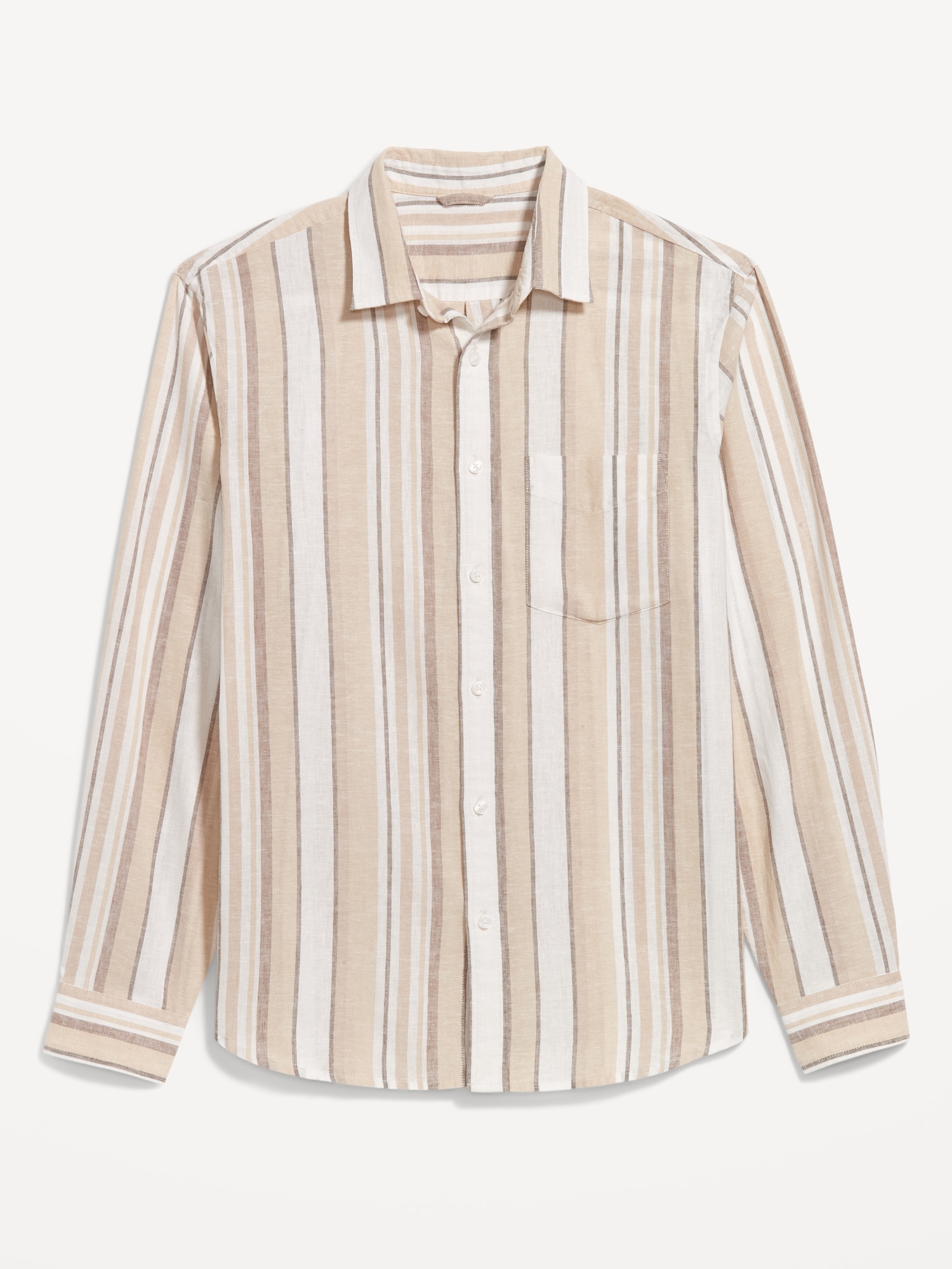 Classic Fit Linen-Blend Shirt: spread collar, long sleeves, buttoned cuffs, full-button front, patch chest pocket, #691163