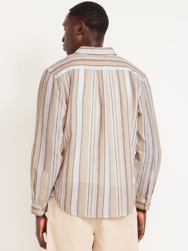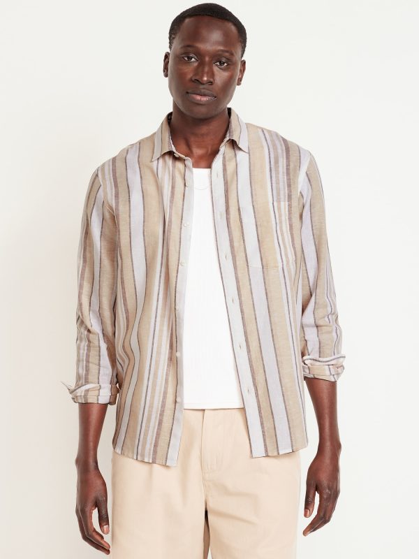 Classic Fit Linen-Blend Shirt: spread collar, long sleeves, buttoned cuffs, full-button front, patch chest pocket, #691163