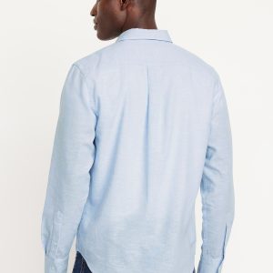 Classic Fit Linen-Blend Shirt: spread collar, long sleeves, buttoned cuffs, full-button front, patch chest pocket, #691163