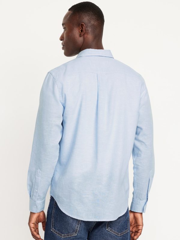Classic Fit Linen-Blend Shirt: spread collar, long sleeves, buttoned cuffs, full-button front, patch chest pocket, #691163