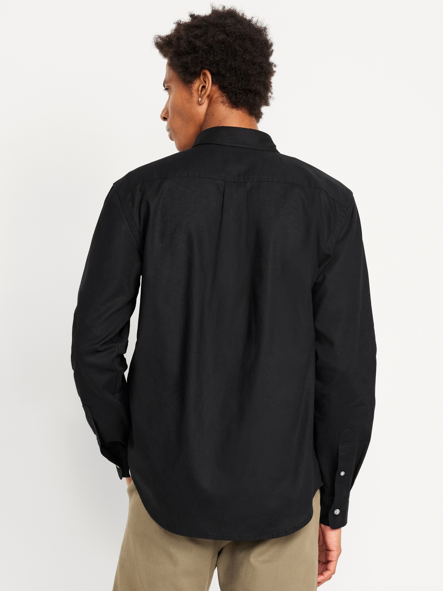 Classic Fit Linen-Blend Shirt: spread collar, long sleeves, buttoned cuffs, full-button front, patch chest pocket, #691163