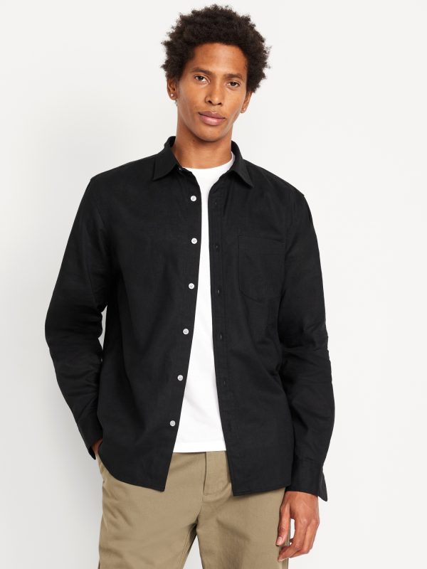 Classic Fit Linen-Blend Shirt: spread collar, long sleeves, buttoned cuffs, full-button front, patch chest pocket, #691163