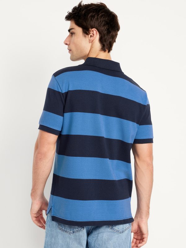 Classic Fit Pique Polo: spread rib-knit collar, short sleeves with rib-knit cuffs, buttoned placket, striped print, vented sides, #800818