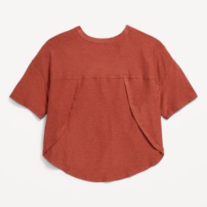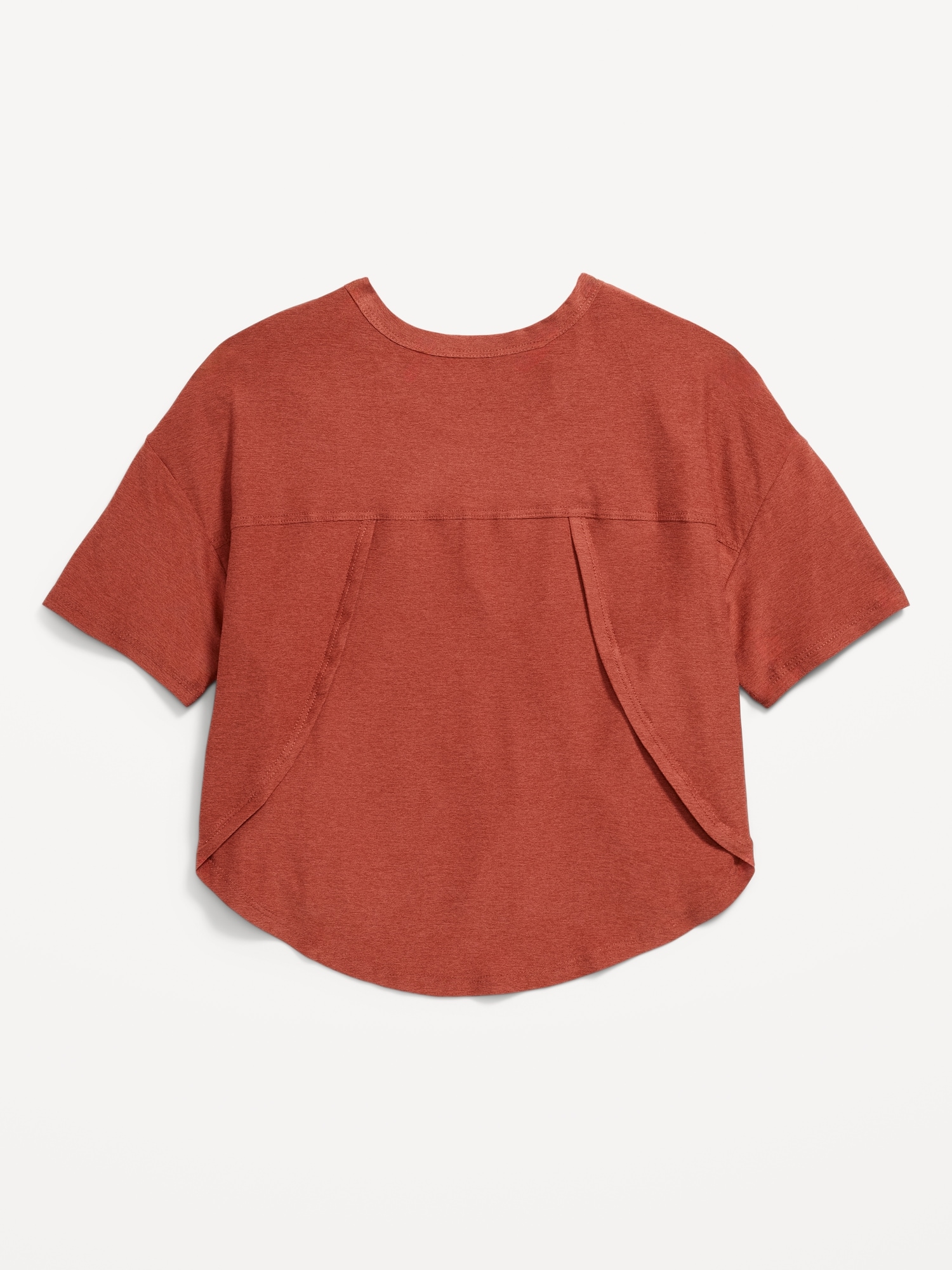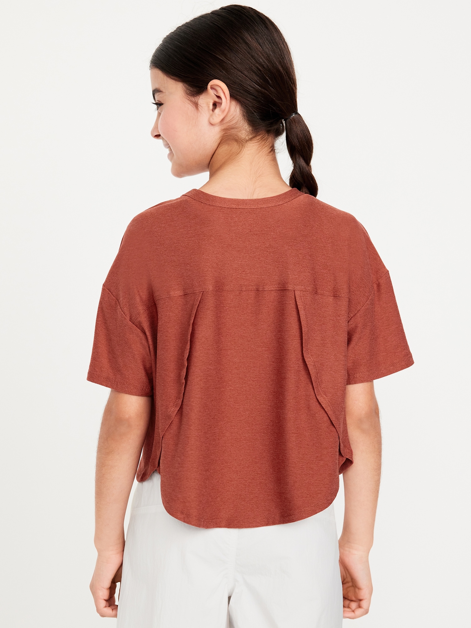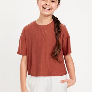 CloudMotion Cropped Performance T-Shirt for Girls: crew neck, short sleeves, drop shoulders, tulip hem, slightly cropped, #694626