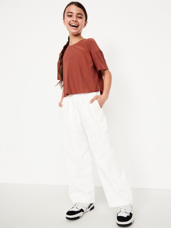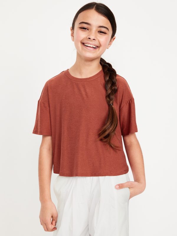CloudMotion Cropped Performance T-Shirt for Girls: crew neck, short sleeves, drop shoulders, tulip hem, slightly cropped, #694626