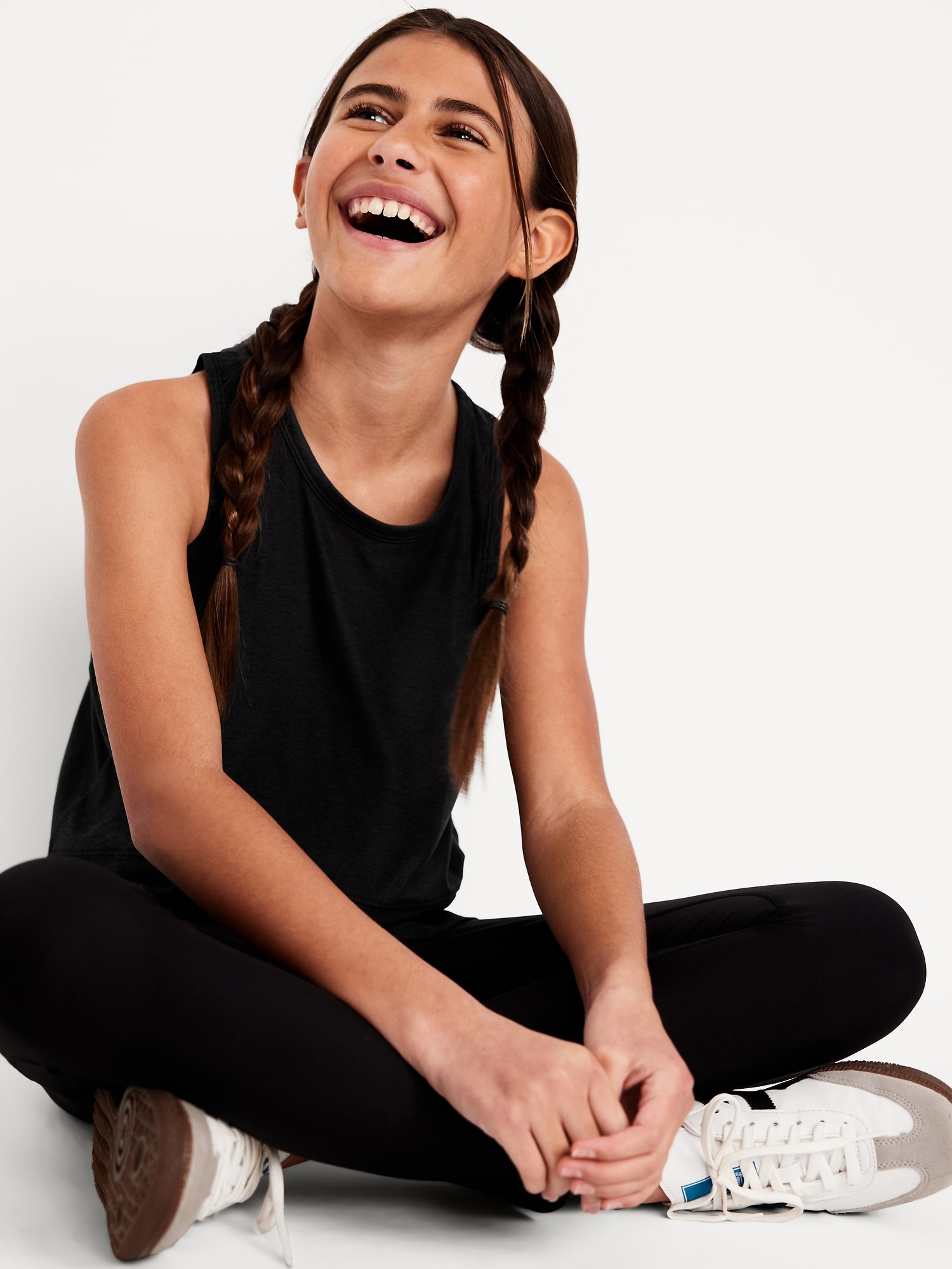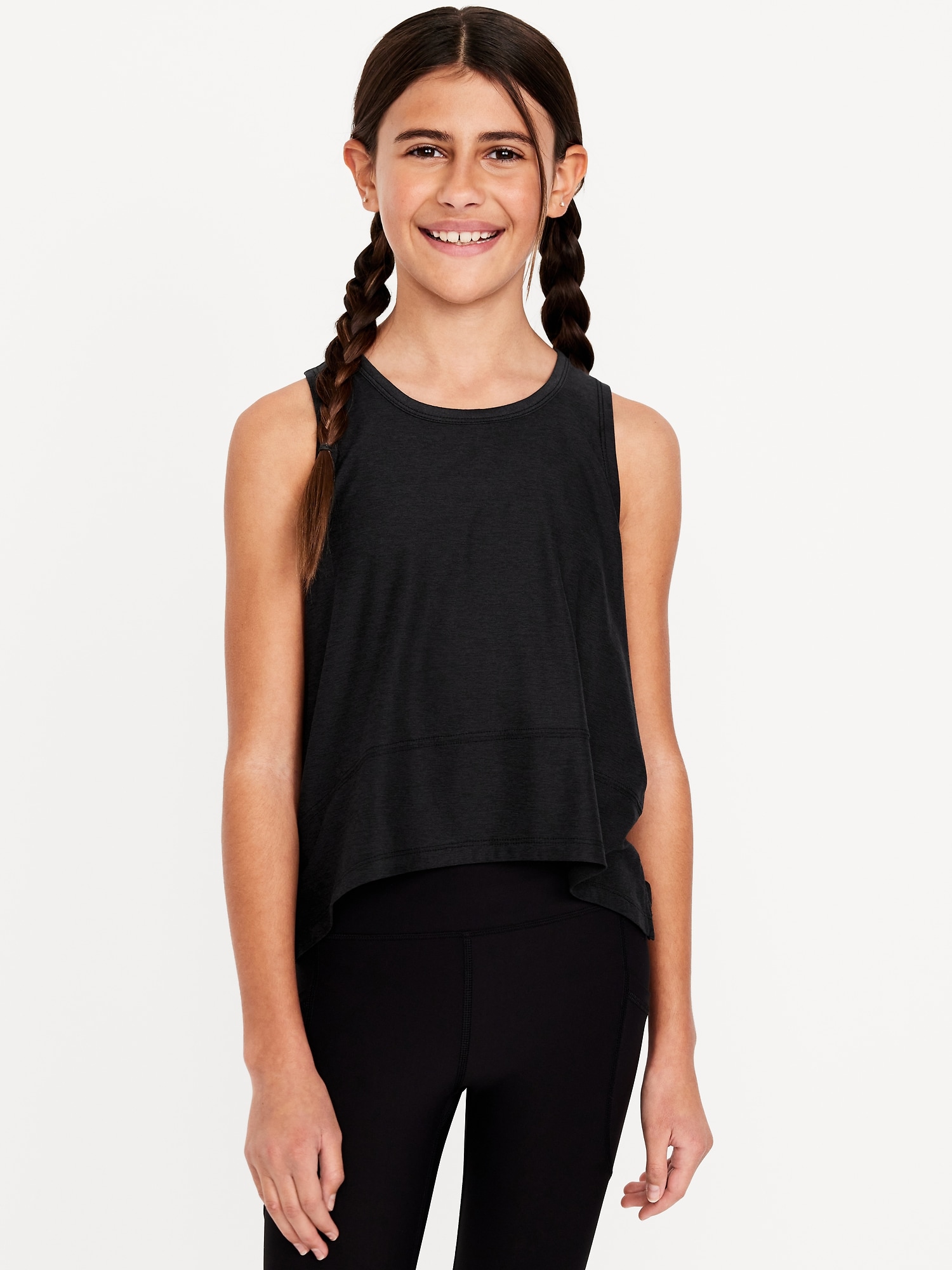 CloudMotion Muscle Tank Top for Girls: scoop neck, sleeveless, seamed waist, curved hem, side slits, #694780