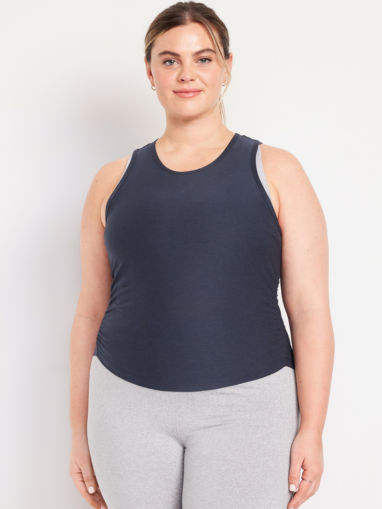 CloudMotion Ruched Tank Top: The new Cloud94 Soft. Versatile, sweat-wicking and soft as a literal cloud.crew neck, sleeveless, ruched sides, curved hem, go-dry wicks moisture, #663785