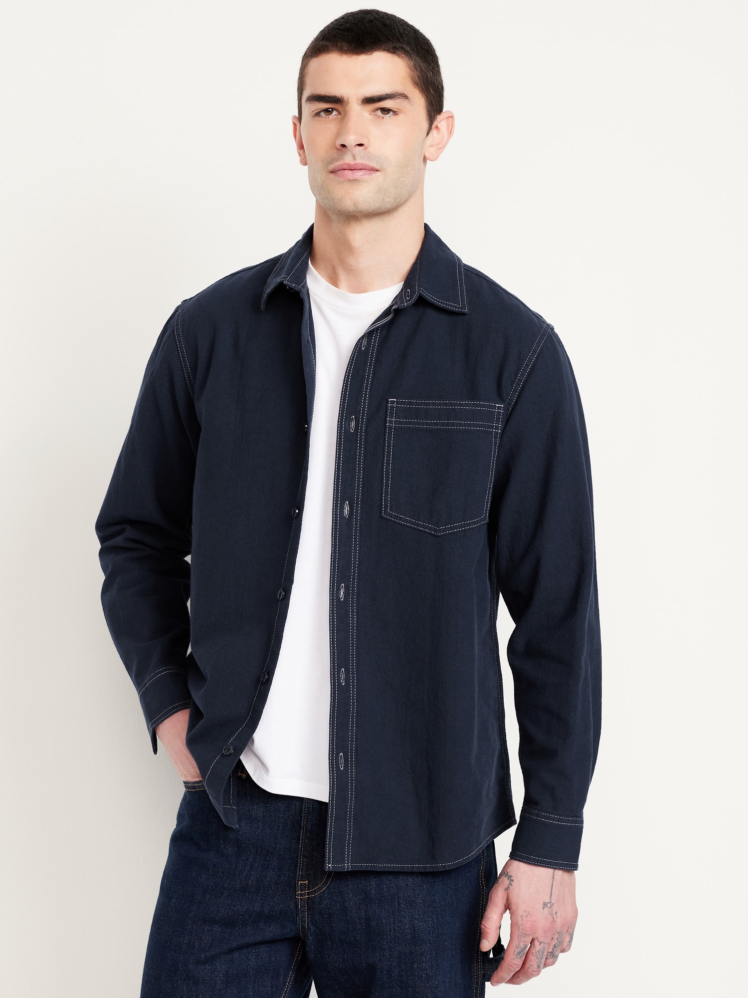 Contrast Stitch Workwear Shirt