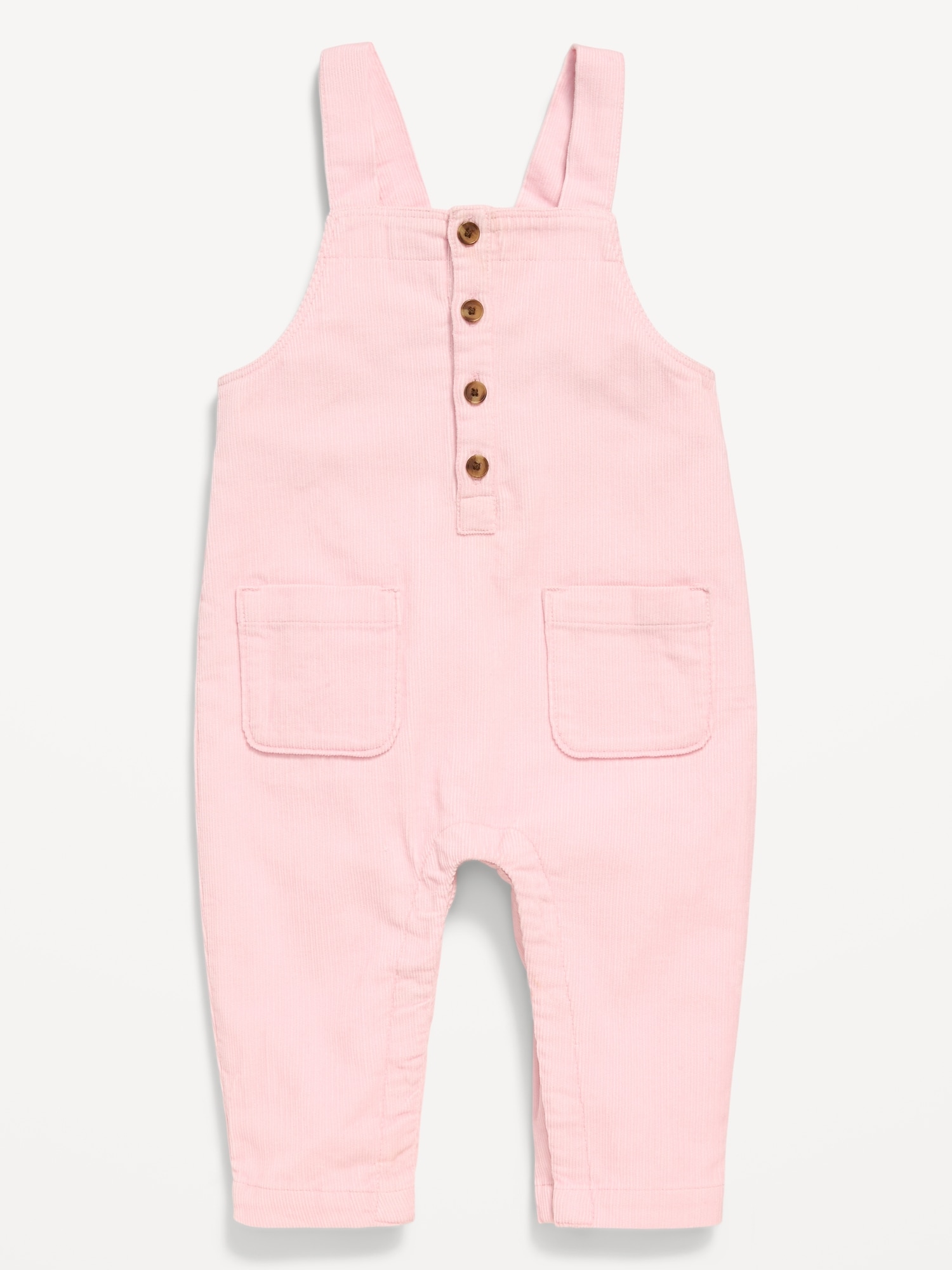 Corduroy Pocket Overalls for Baby: square neckline, shoulder straps, buttoned placket at front, hidden snaps along inseam, #802637