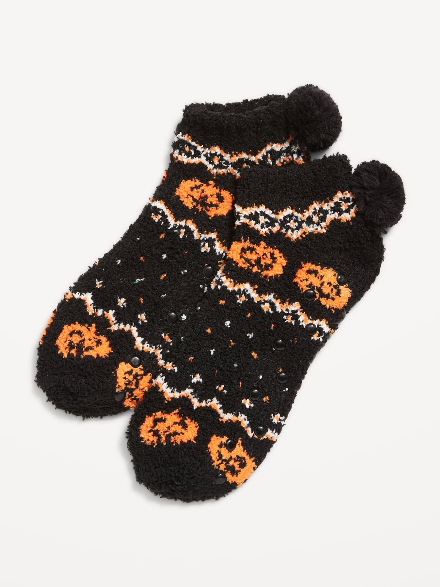 Cozy Ankle Socks for Women: pom at heel, notched toe seams, seasonal prints and graphics vary, #803655