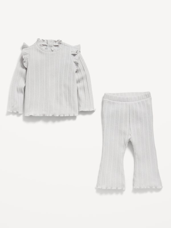 Cozy Long-Sleeve Ribbed Ruffle-Trim Top and Pants Set for Baby