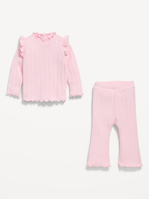 Cozy Long-Sleeve Ribbed Ruffle-Trim Top and Pants Set for Baby