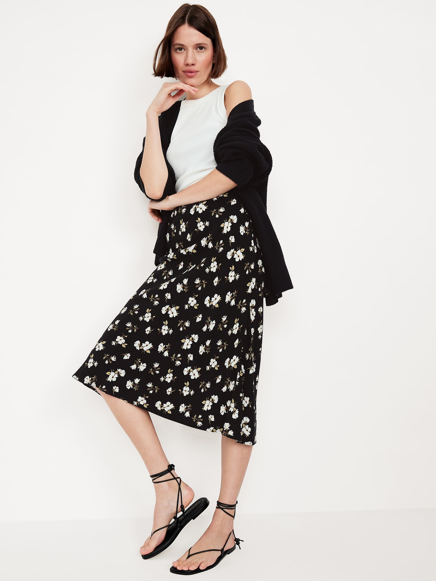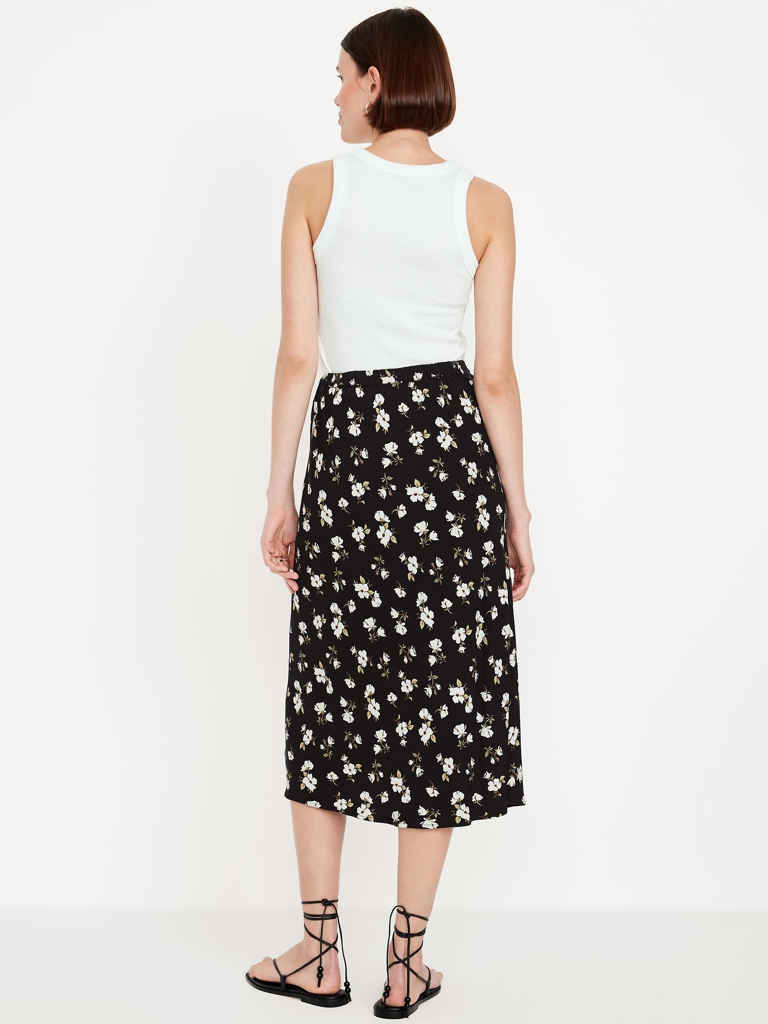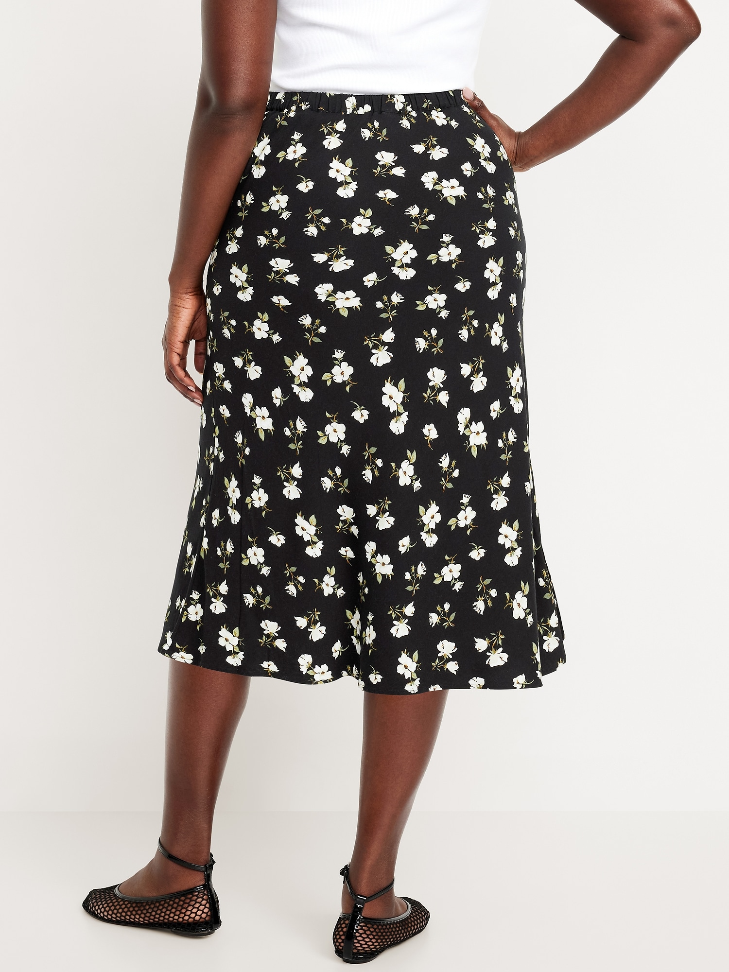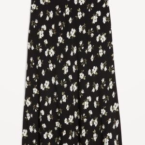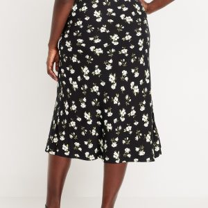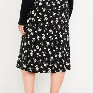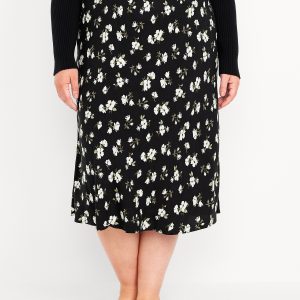 Crepe A-Line Midi Skirt: elastic back waist, pull-on style, prints vary, #681199