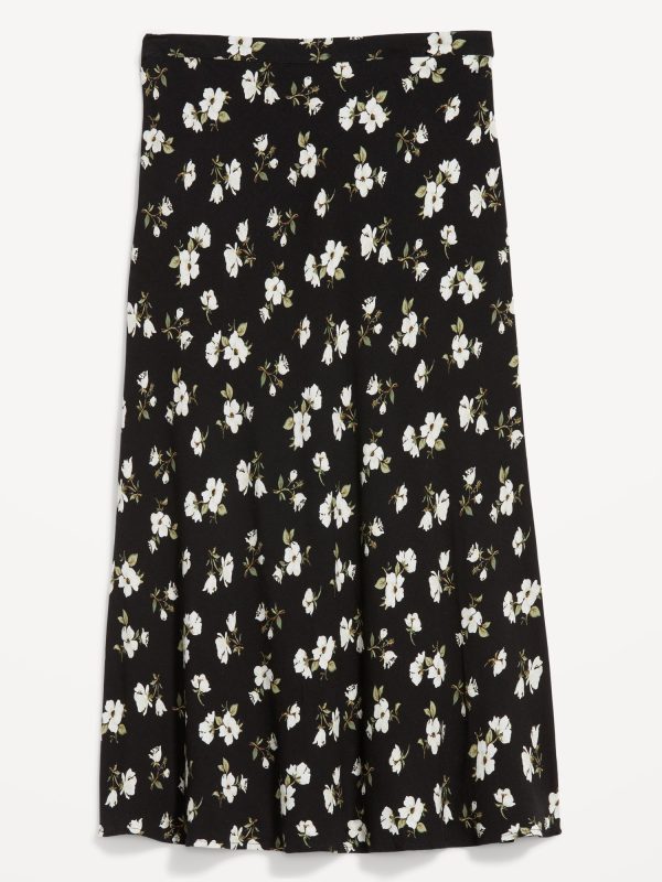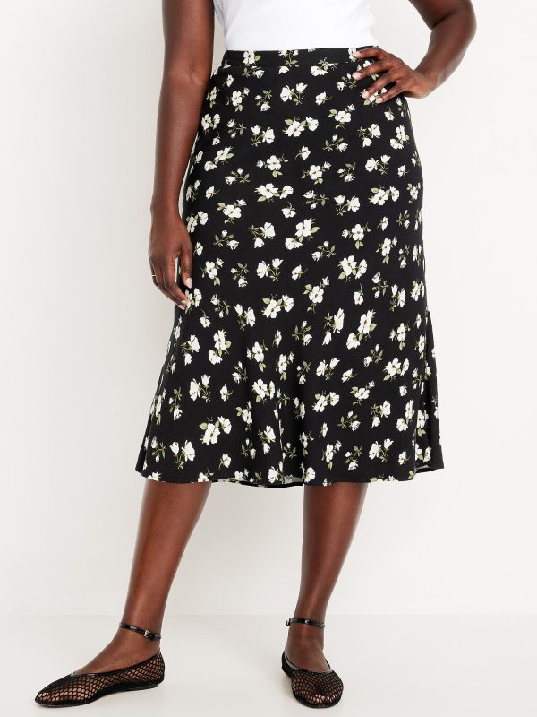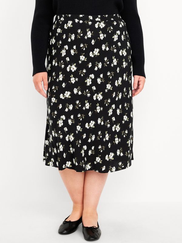 Crepe A-Line Midi Skirt: elastic back waist, pull-on style, prints vary, #681199