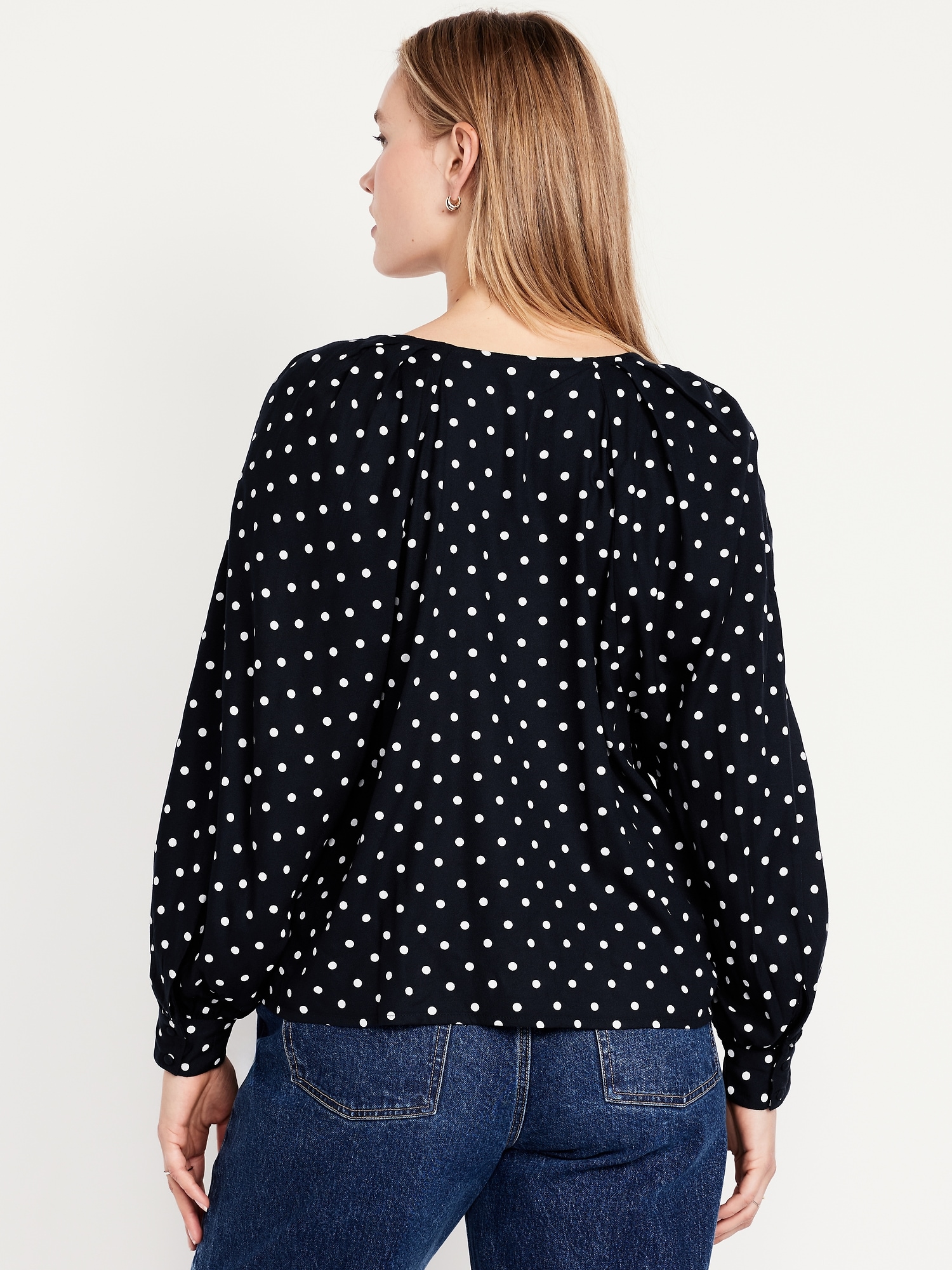 Crepe Button-Down Top: v-neck, raglan sleeves with buttoned cuffs, full-button front, prints vary, #805742