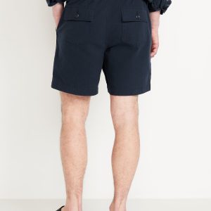 Crepe Workwear Shorts — 7-inch inseam: elastic-drawstring waistband, button front, front utility pockets, back button-flap pockets, easy pull-on style, #751383