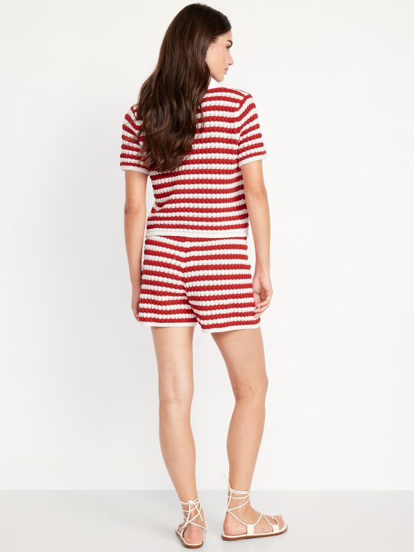 Crochet Shorts — 3.5-inch inseam: elastic-drawcord waist, striped crochet, #761559