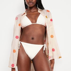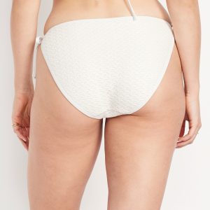 Crochet String Bikini Swim Bottoms: elastic waist and leg openings, side ties, crochet knit with lining, #747910