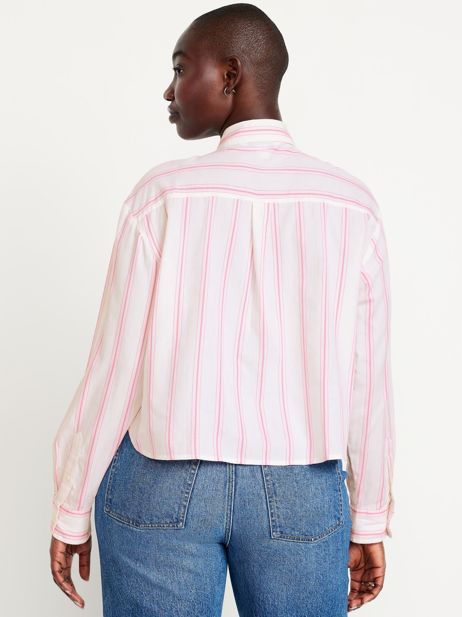 Cropped Button-Down Striped Shirt