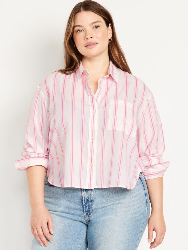Cropped Button-Down Striped Shirt