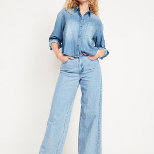 Cropped Jean Button-Down Shirt